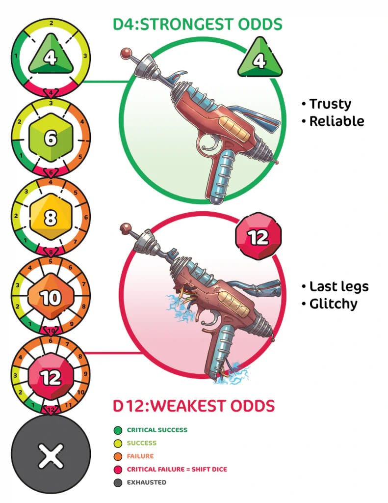 It’s a peculiar decision within the TTRPG community, as it feels quite contrary to how I usually play. Bigger dice mean better successes, or at least that’s how my constant rolling of D20s in D&D has trained my brain. And I’m not the only one; Richer noted how that reversal in dice design was the “first, biggest and one of the only hurdles that testers had with the system.” But once players adapted, the game felt pretty easy to play.
