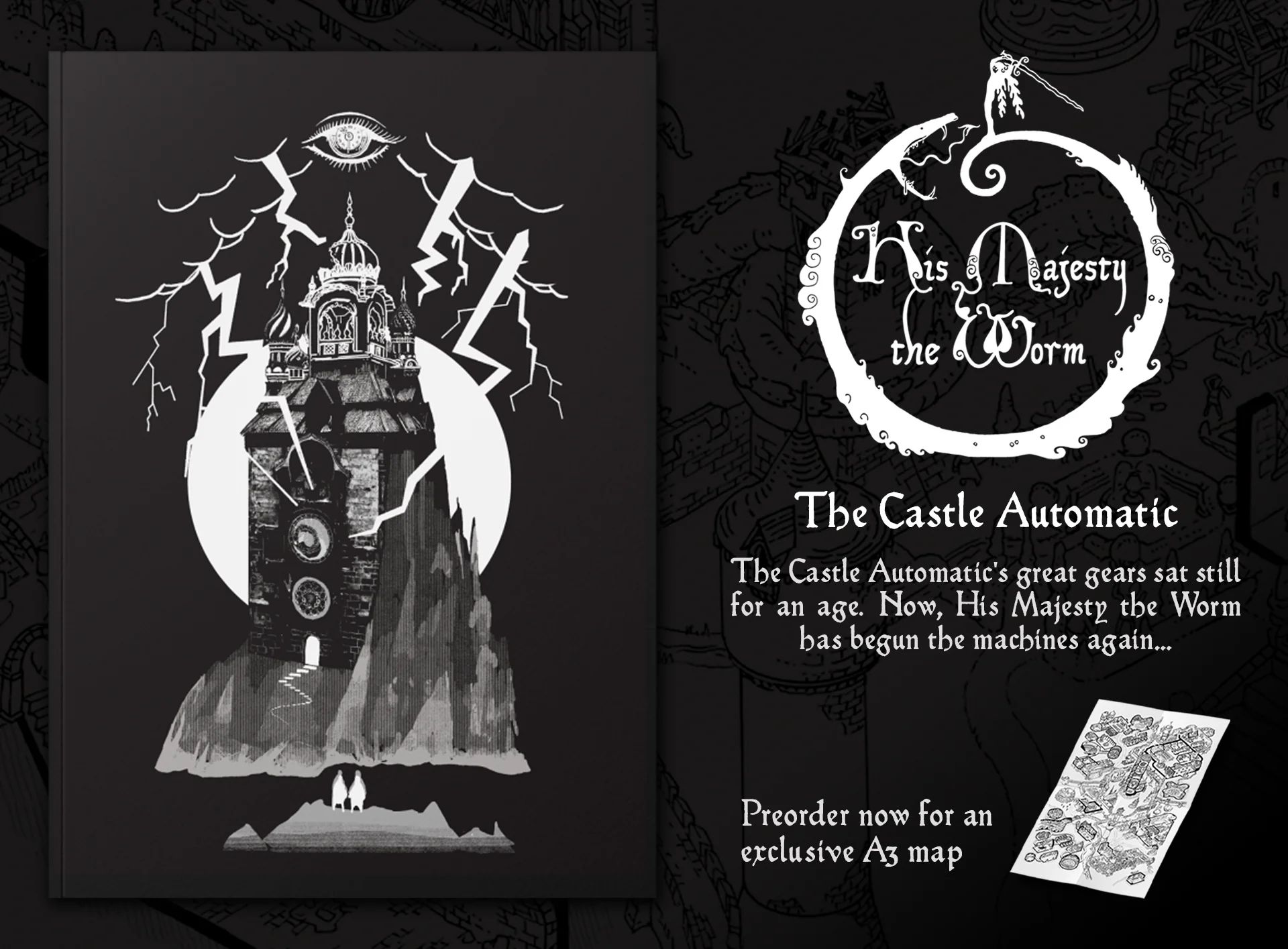 Now the game is releasing its first supplement, The Castle Automatic. The book is a “100+ room, 5-level Metroidvania-style dungeon” where players will “repair magi-mechanical engines that control the castle’s sun, moon, weather and seasons to overcome its deadly challenges.” The expansion acts as an easy way for new DMs to pick up His Majesty and get straight into the game.